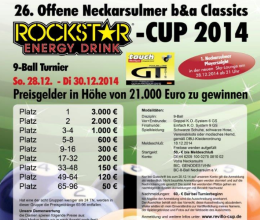 Christian Reimering der Turniergewinner der letzten beiden Jahre hat sich auch dieses Jahr wieder angemeldet und will den Hattrick mit dem 3. Sieg in Folge erziehlen. Sebastian Staab der 2013 zweiter des Turnier wurde, hat sich ebenfalls wieder in Neckarsulm angemeldet. Auch Oliver Ortmann kommt aus Hamburg wieder zum Neckarsulmer Kultturnier. Mit Tony Drago aus Malta hat sich weiter ein Internationaler Top Spieler im Poolbillard sowie im Snooker für das Turnier angemeldet.