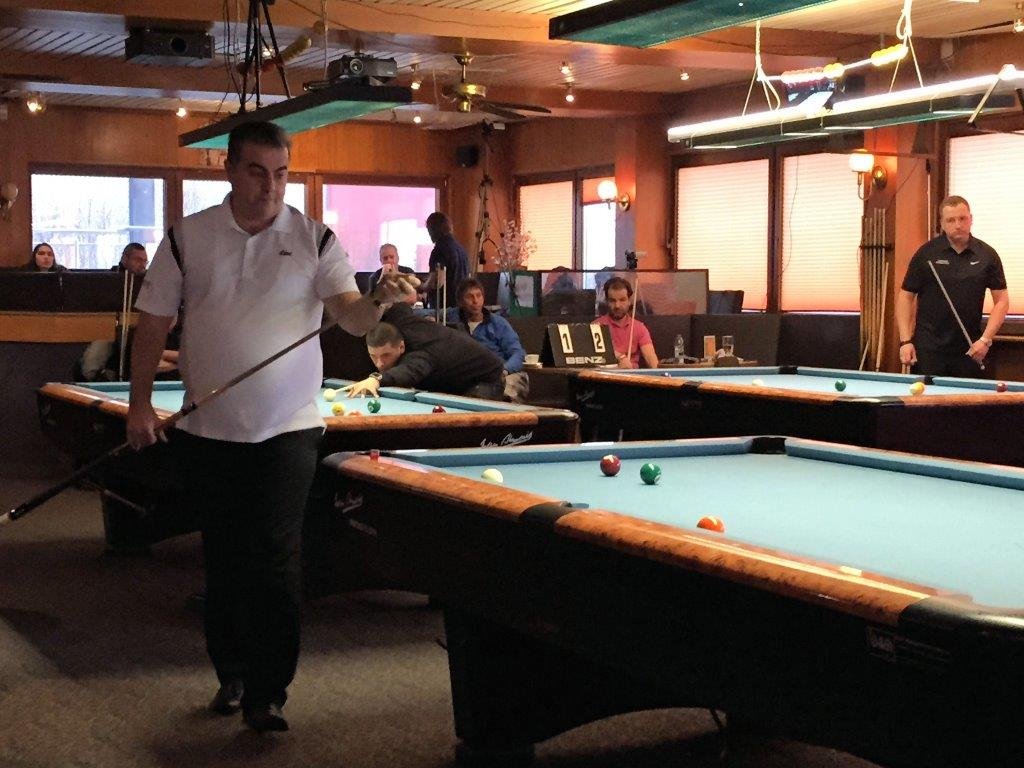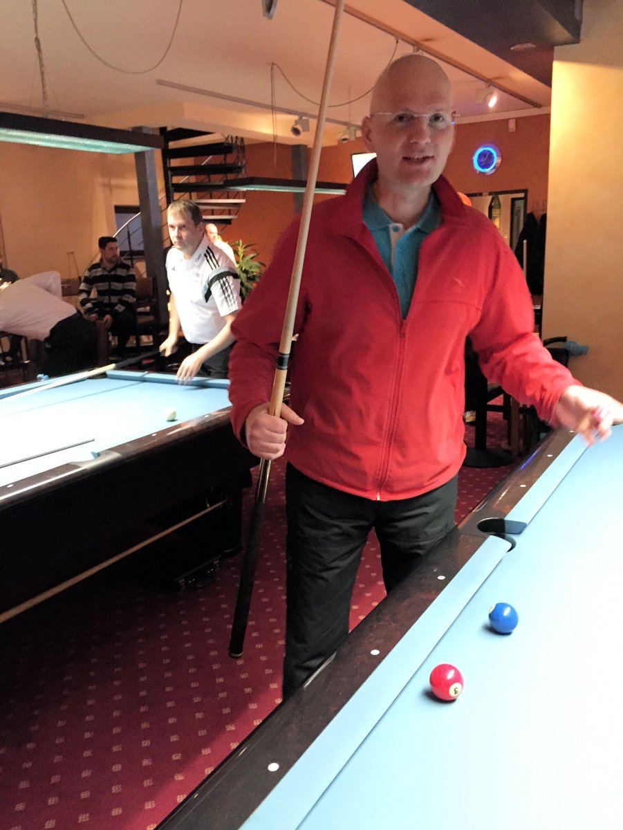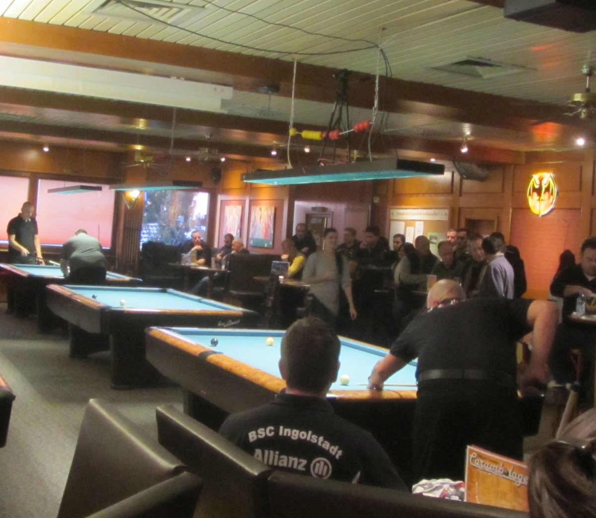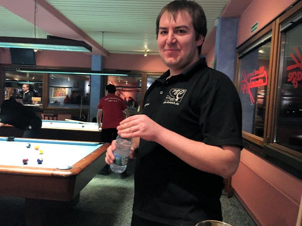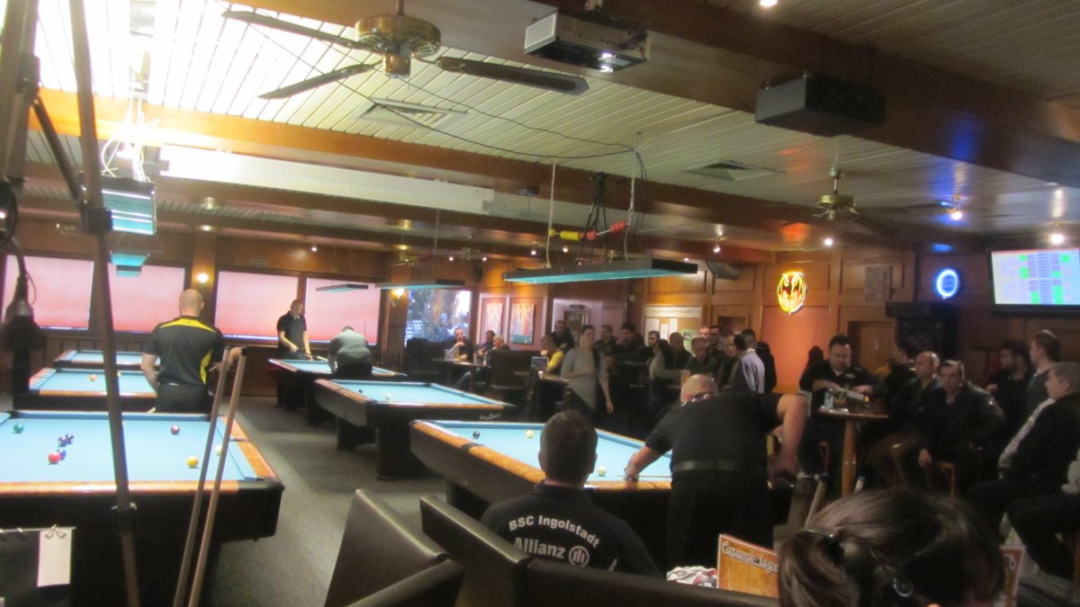 Exakt das gleiche Schicksal widerfuhr aber auch anderen. So beispielsweise Martin Poguntke in seinem Achtelfinale gegen Klaus Hebestreit aus Osnabrück. Bei 8:8 bekam er einen ganz fürchterlichen „Kick“ auf die Neun und setzte diese neben das Loch. Parallel erlaubte sich Roman Hybler (BSV Fürstenfeldbruck) einen völlig ungewohnten Fauxpas bei eigener 8:7-Führung, der Snooker-Profi Alexander Ursenbacher zu einem nicht mehr erwartenden Besuch am Tisch einlud. Der Schweizer Jungstar ergriff die Gelegenheit und ließ seinen Widersacher nicht mehr an den Tisch.