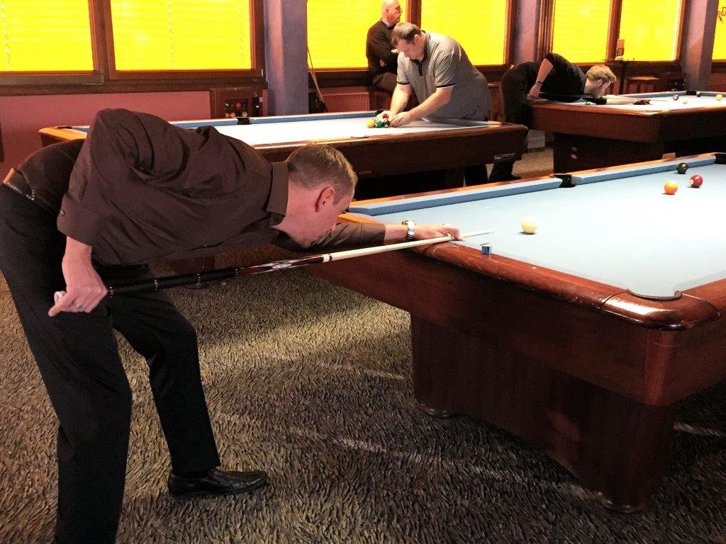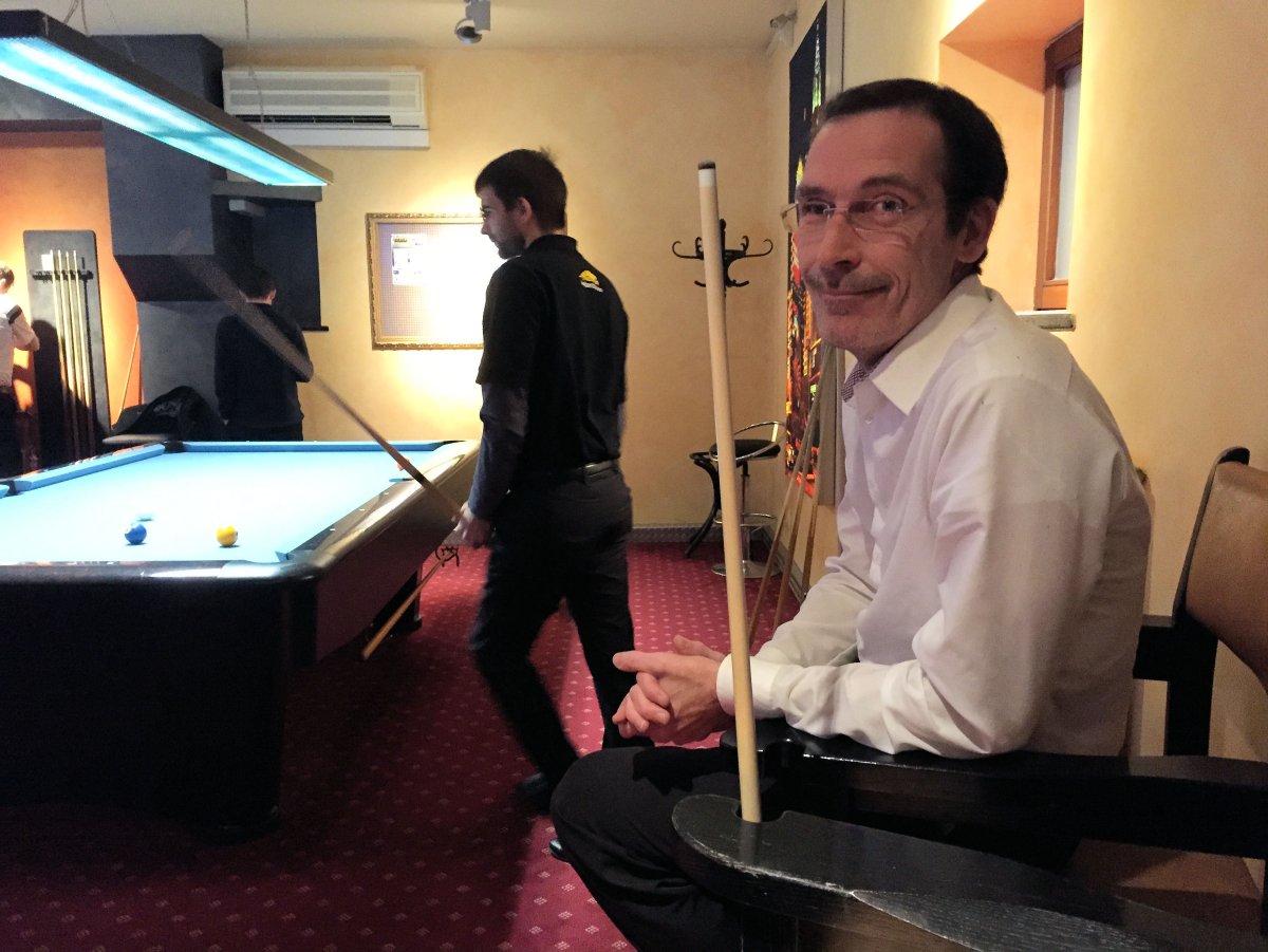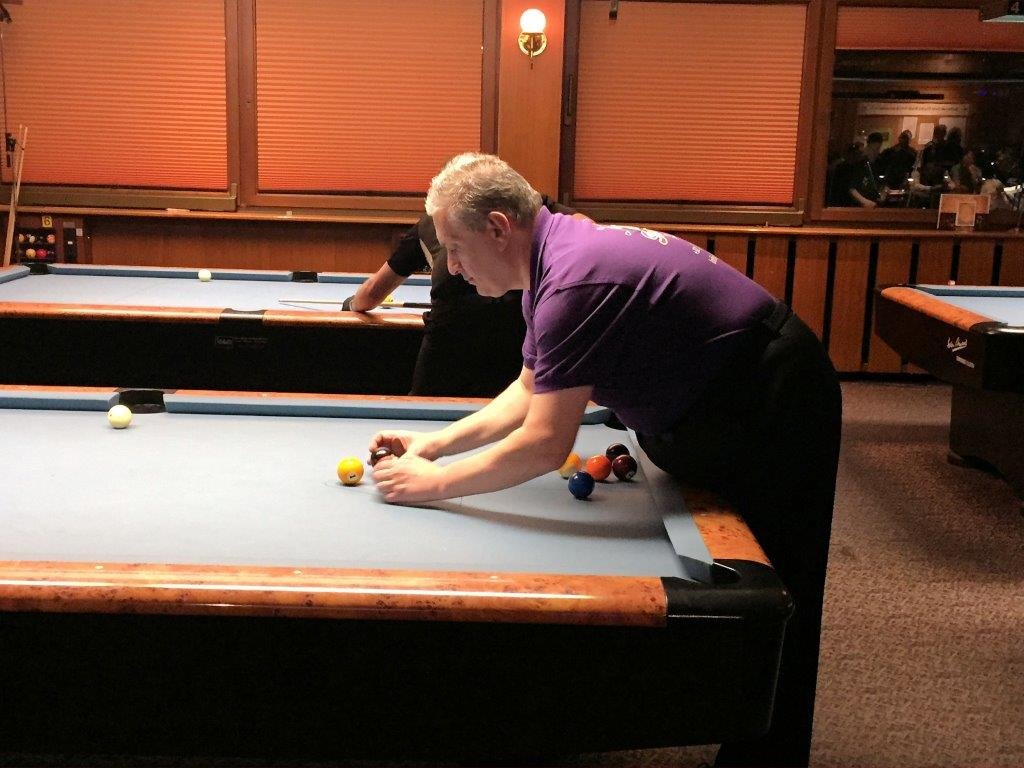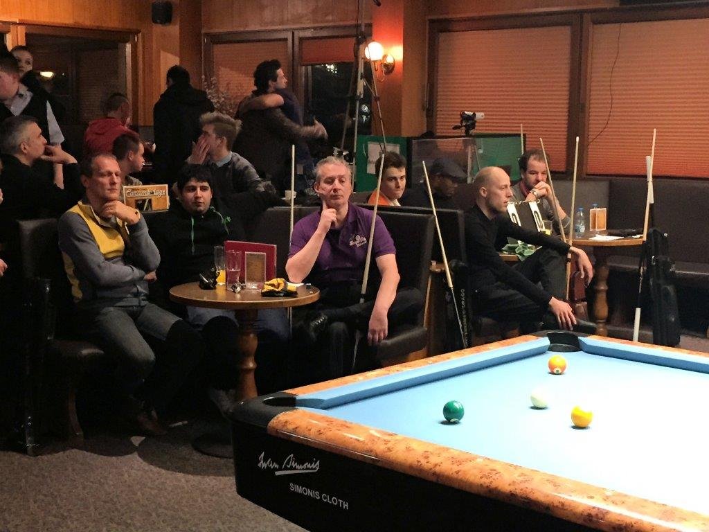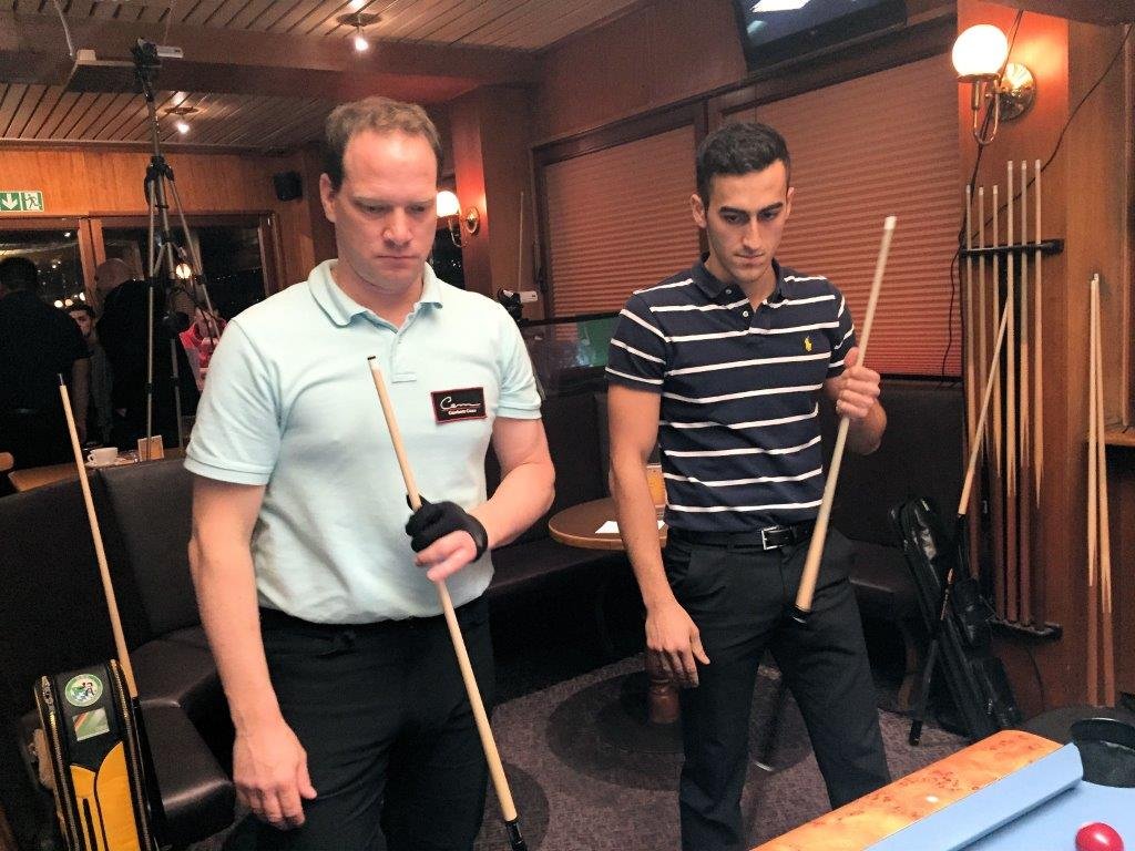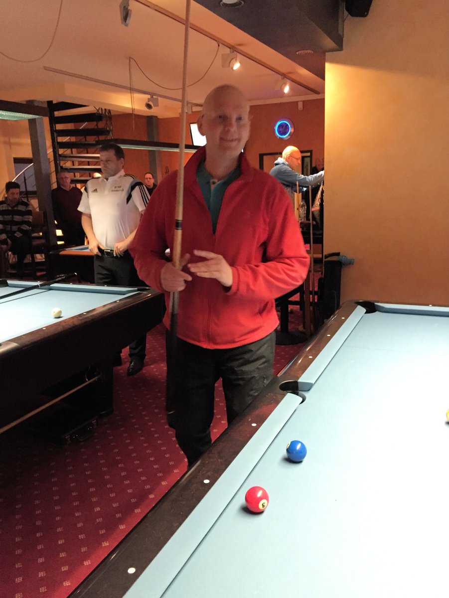 Exakt das gleiche Schicksal widerfuhr aber auch anderen. So beispielsweise Martin Poguntke in seinem Achtelfinale gegen Klaus Hebestreit aus Osnabrück. Bei 8:8 bekam er einen ganz fürchterlichen „Kick“ auf die Neun und setzte diese neben das Loch. Parallel erlaubte sich Roman Hybler (BSV Fürstenfeldbruck) einen völlig ungewohnten Fauxpas bei eigener 8:7-Führung, der Snooker-Profi Alexander Ursenbacher zu einem nicht mehr erwartenden Besuch am Tisch einlud. Der Schweizer Jungstar ergriff die Gelegenheit und ließ seinen Widersacher nicht mehr an den Tisch.