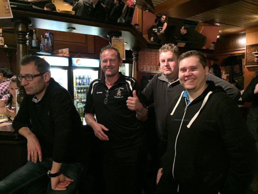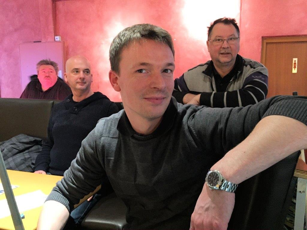 Im Foto die Top 4 v.l.: Christian Reimering, Klaus Hebestreit, Mario He, Andreas Roschkowski, Peter Flicker (Organisator) und Sebastian Spohn (Turnierleiter).